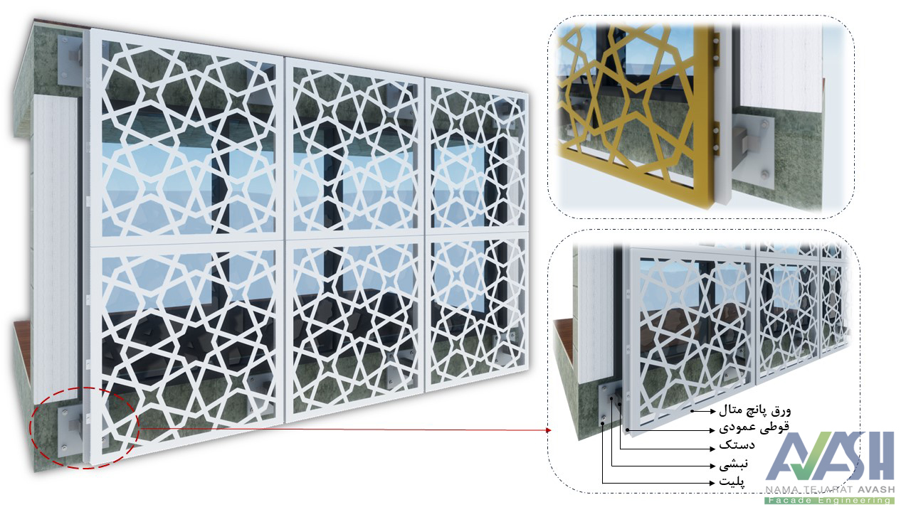 این نما به عنوان پوسته دوم نما و مناسب برای سازههایی میباشد که خواهان جذب انرژی صوتی بالایی هستند. نمای استرچ متال همچنین در کنترل تابش نور مستقیم خورشید کمک میکند و سرعت نصب آن خیلی بالا و و هزینهی اجرایی آن پایین است.