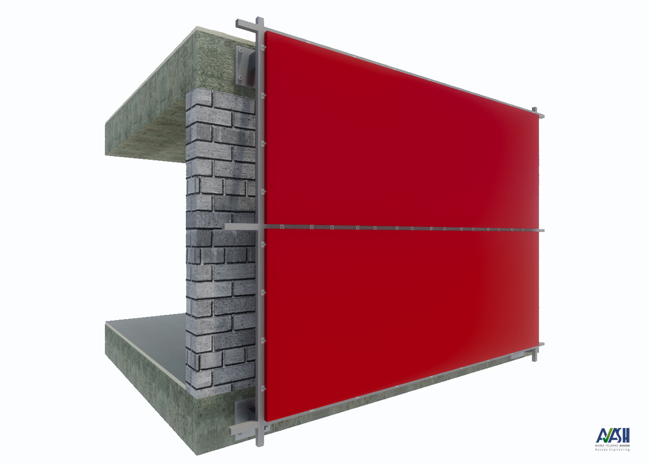 در این روش ابتدا زیرسازی نما با پروفیل‌های آهنی اجرا می‌گردد و ورق‌ها به وسیله پیچ به قوطی‌ها متصل می‌گردد. از مزایای این روش این است که می‌توان هر پانل را به صورت جداگانه تعویض کرد و هزینه تمام شده نما کمتر از روش ریلی می‌باشد.