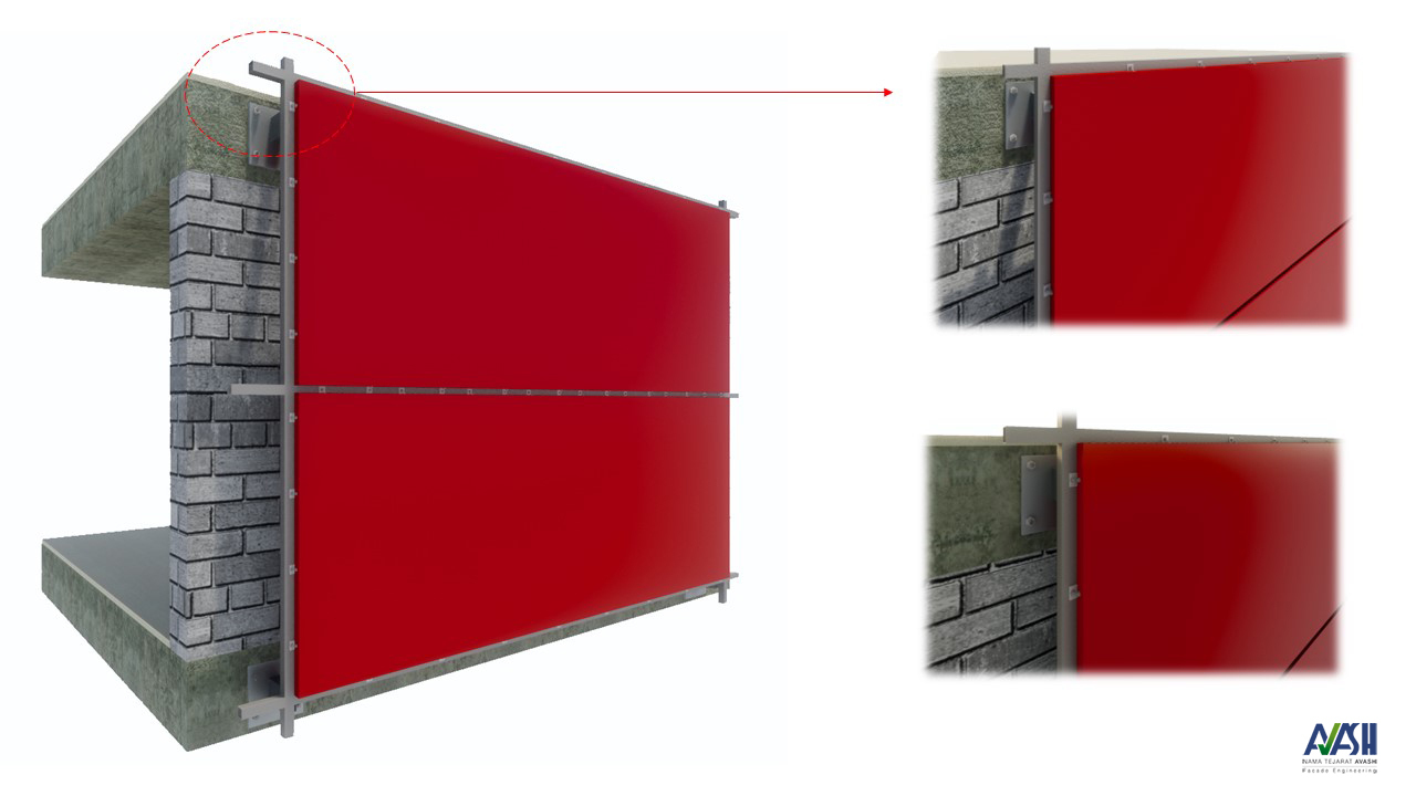 در این روش همچون روش فیکس زیرسازی نما به وسیله پروفیل‌های آهنی اجرا می‌گردد و ورق‌ها بدون اورلب توسط زهوارهای آلومینومی روی قوطی‌های آهنی نصب می‌گردد. این روش فقط در ایران اجرا می‌گردد که استاندار نمی‌باشد و مورد تایید شرکت‌های مشاور و خیلی از مهندسین نمی‌باشد.