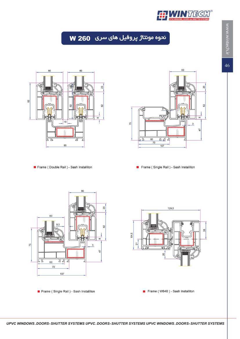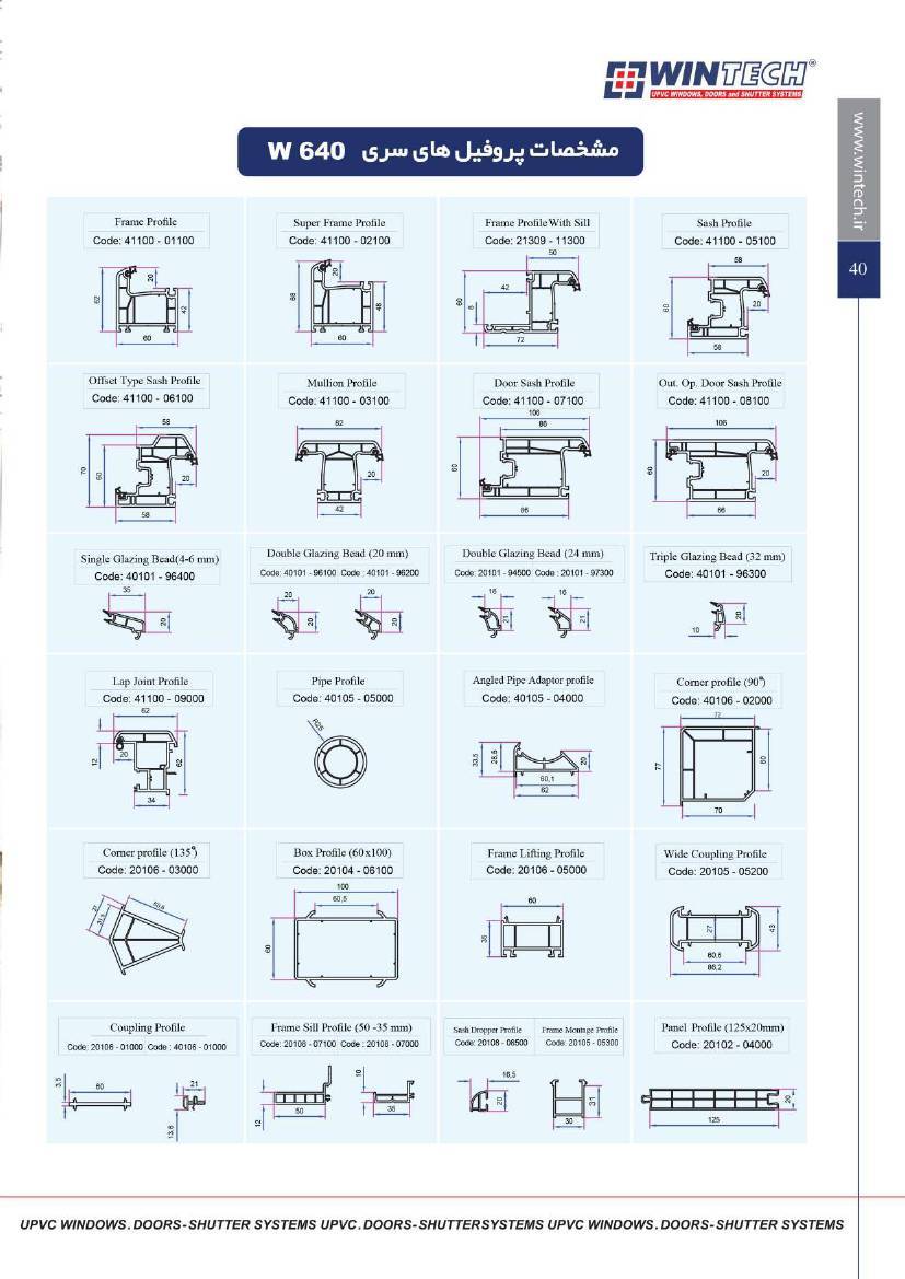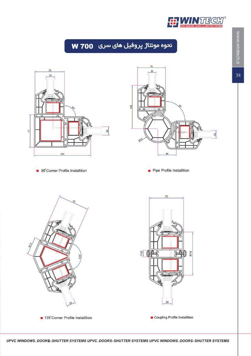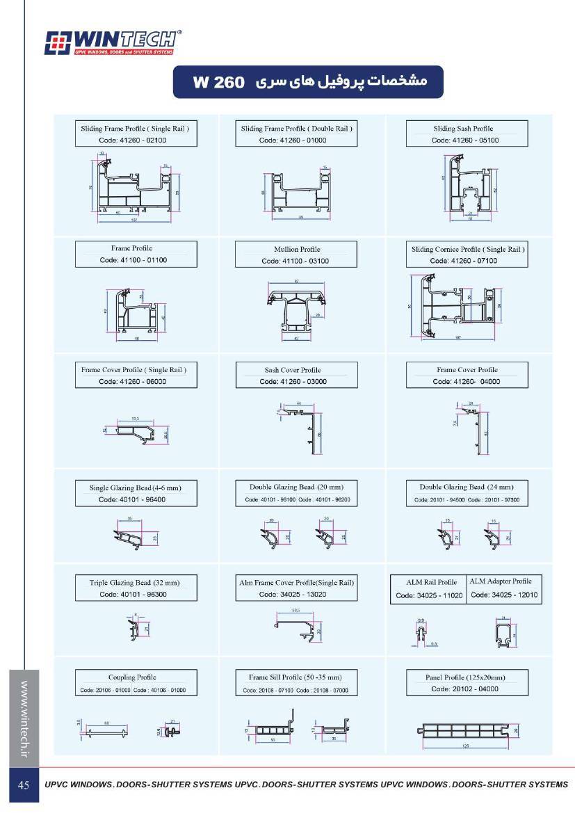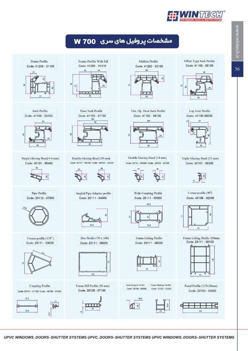 مشخصات فنی و ابعاد محصولات UPVC وین تک به صورت زیر است :