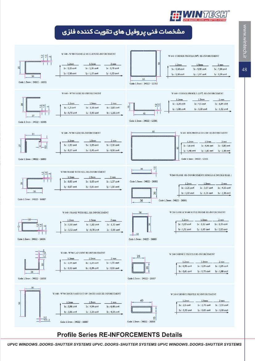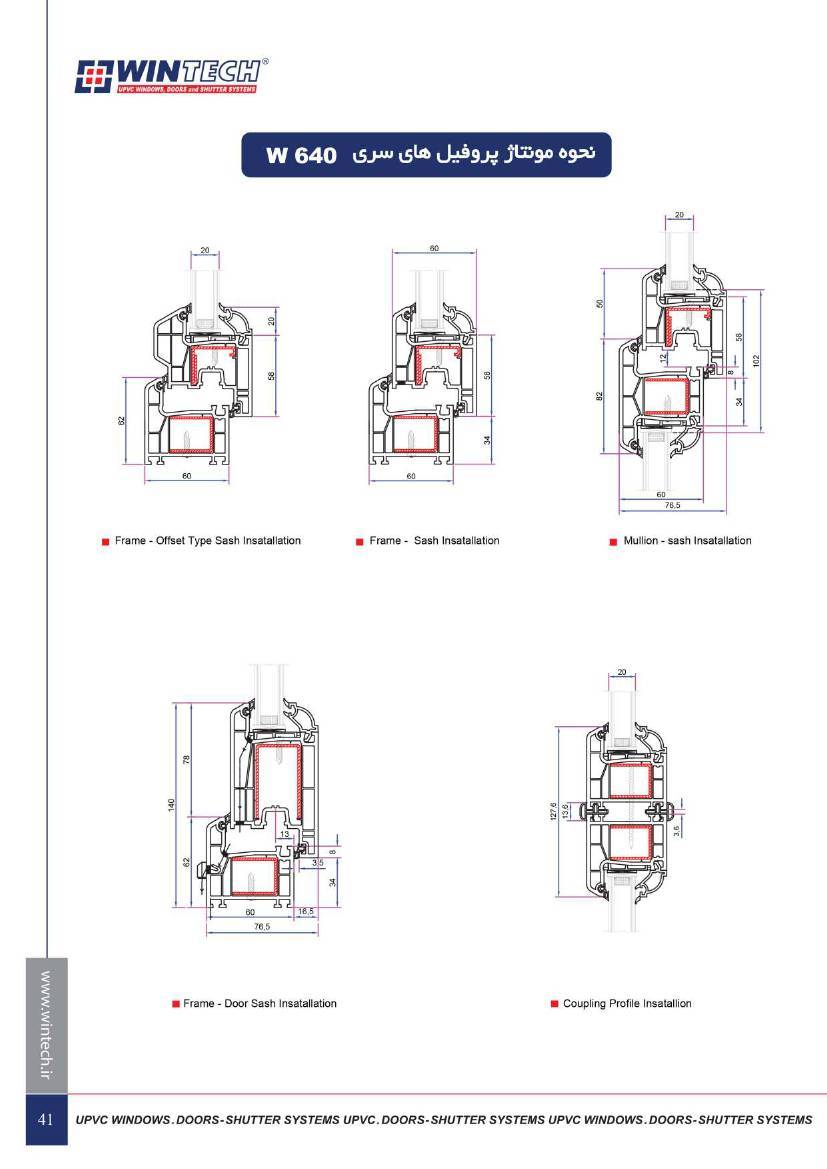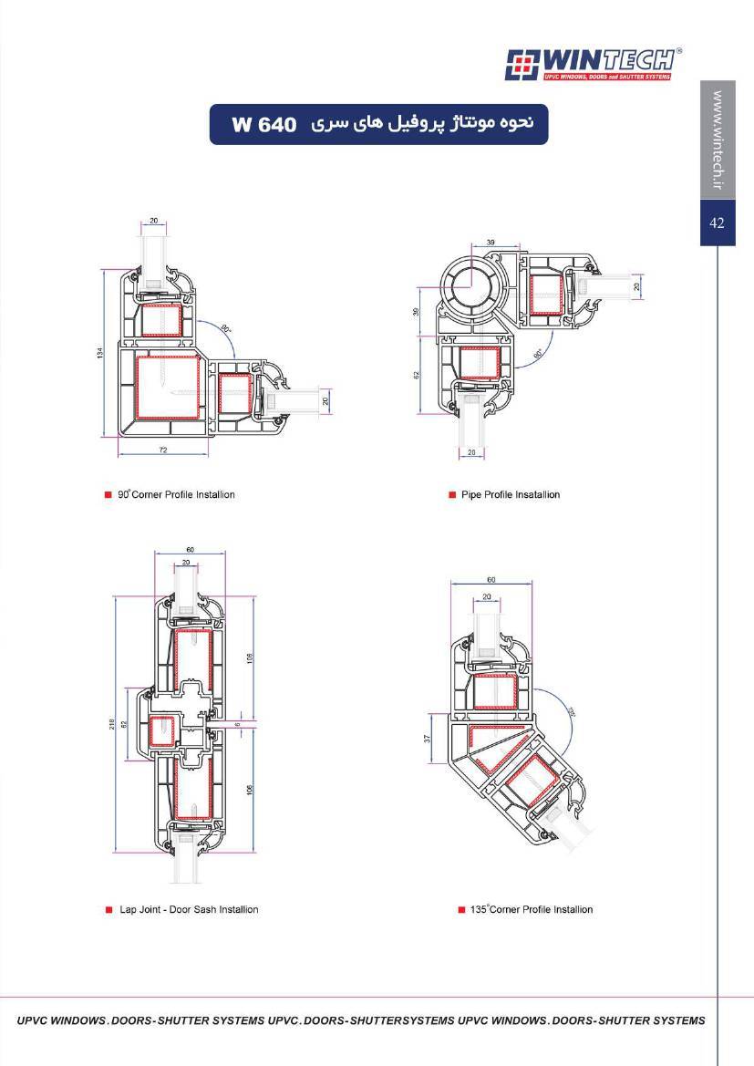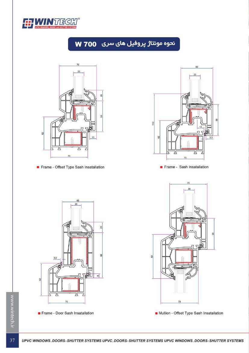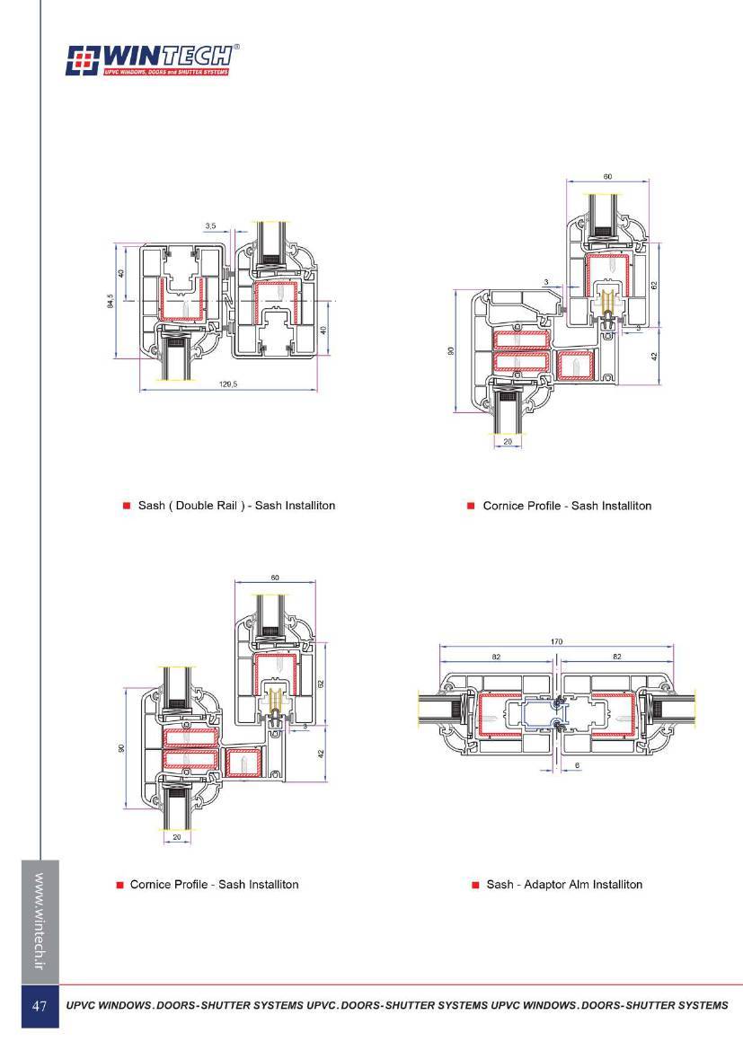 مشخصات فنی و ابعاد محصولات UPVC وین تک به صورت زیر است :